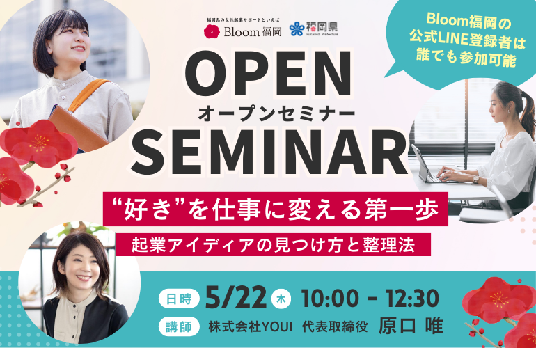起業を目指す女性を応援するBloom福岡では、定期的に「オープンセミナー」を開催しています。