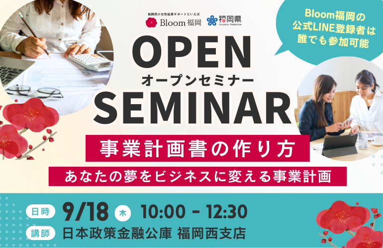 起業を目指す女性を応援するBloom福岡では、定期的に「オープンセミナー」を開催しています。