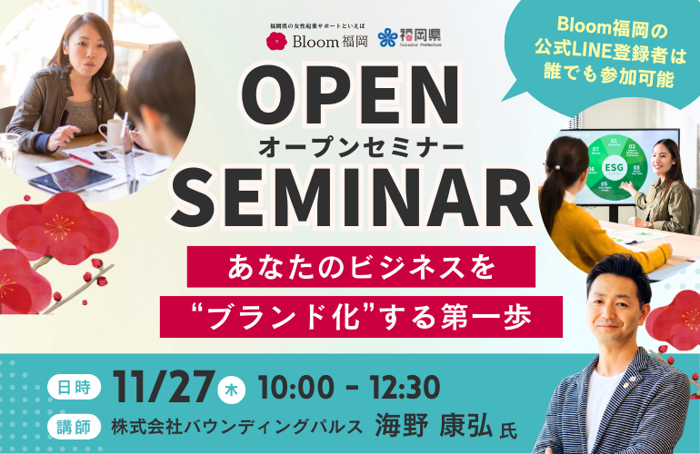 起業を目指す女性を応援するBloom福岡では、定期的に「オープンセミナー」を開催しています。