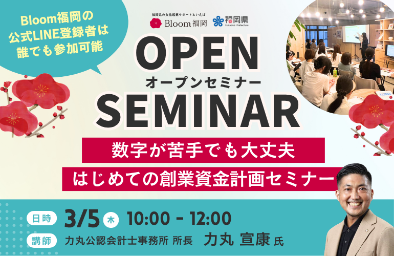 3/5(木) 10時〜【第6回オープンセミナー開催!】「数字が苦手でも大丈夫 はじめての創業資金計画セミナー」~お金の基礎を学ぼう~